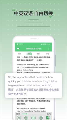 分级听力训练功能:软件提供海量按CEFR等级(A1-C2)分类的BBC六分钟英语音频库。每段音频配有同步高亮滚动字幕,支持倍速调节(如0.75x, 1.0x, 1.25x, 1.5x)和AB点复读。用户可根据自身水平选择合适难度的材料,并通过调节语速来逐步适应正常语速的英文广播,专门解决学习者因语速过快、连读弱读现象导致的听力理解障碍。此功能通过可调控的输入训练,系统性提升听觉解码能力。