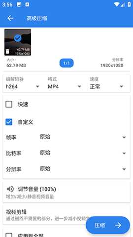 2. 自定义压缩参数调节:针对专业用户或特殊需求的精细控制痛点,提供手动调节界面。精确设定输出视频的码率(恒定码率CBR或可变码率VBR)、帧率、分辨率、关键帧间隔以及音频的码率与采样率。此功能解决了需要满足特定技术规格或拥有独特质量评估标准的应用场景。