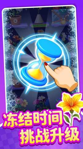 核心操作与目标:玩家的基本操作是通过手指滑动,将任意一朵鲜花与相邻(上下左右)的花朵交换位置。交换后,若在横排或竖列上形成三个或更多相同花朵的连续排列,这些花朵就会被消除,上方的花朵会落下填补空缺,并可能引发新的连锁消除。每个关卡都有明确的主目标,通常是在规定的步数内或限定的时间内,达到指定的分数、消除特定数量的某种花朵、或者将指定物品(如被困在花朵下的种子)移动至屏幕底部。关卡中还会散布着各种障碍,如需要相邻消除两次才能清除的冰冻花蕾、会阻挡花朵移动的木质栅栏等,这些障碍增加了游戏的复杂度和趣味性。