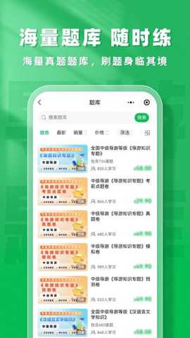 导游题库帮是一款专为导游资格证考生设计的综合性备考软件,软件深度整合了海量的历年考试真题、权威知识点解析以及多样化的智能练习模式,通过科学的数据分析和个性化的学习路径规划,帮助用户系统性地掌握考试大纲要求,高效提升应试能力与专业知识水平,从而顺利通过资格考试并为未来的职业发展奠定坚实基础。