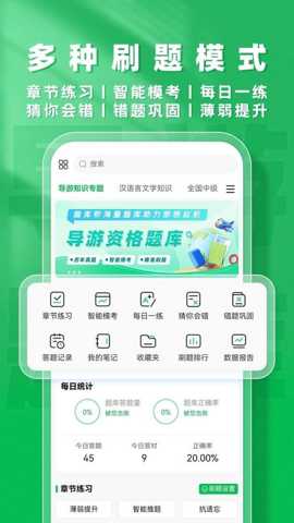 导游题库帮的具体功能设计紧密围绕备考过程中的核心痛点,提供了系统化的解决方案: