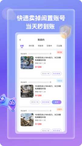 2. 一键发布出售与智能定价功能:卖家仅需填写账号的基础信息与关键资产截图,系统即可调用智能估价模型生成建议售价,并可一键发布至交易市场。此功能解决了个人卖家缺乏市场信息、定价困难且发布流程复杂的痛点,降低了出售门槛。