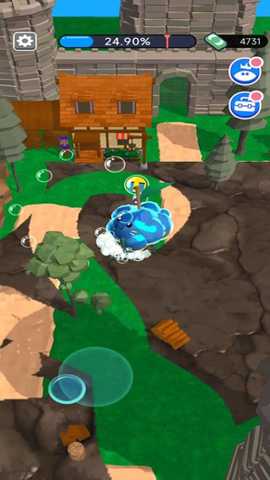 1. 极致的治愈体验与视觉反馈:游戏的美术风格采用明亮的色彩和Q萌的卡通渲染,脏污与洁净的对比效果极其明显。看着史莱姆所过之处,污渍瞬间消失,地面恢复光亮,这种即时、强烈的正反馈能带来巨大的心理满足感和解压效果,是快节奏生活中难得的治愈时刻。