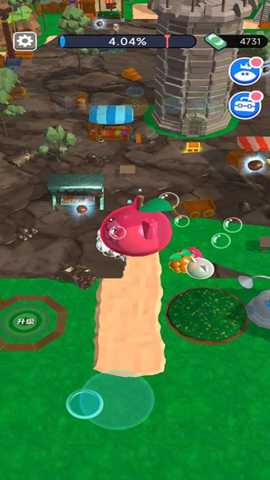 主要操作与即时目标:游戏采用全屏滑动操作,玩家手指在屏幕上向任意方向滑动,即可引导史莱姆向该方向移动。当史莱姆接触到污渍或垃圾时,会自动将其吸收清理,并累积分数与金币。每个关卡都有明确的即时目标,通常是在限定时间内清理掉场景中一定比例(如80%)的污渍。屏幕上方的进度条会清晰显示当前完成度,而倒计时则增加了紧迫感。