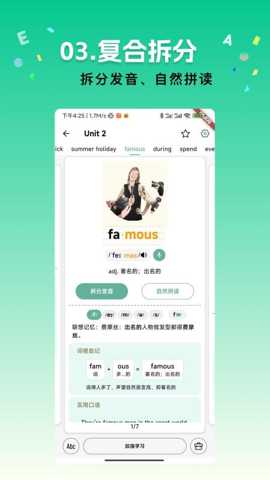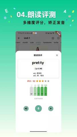 第三个特色是集成化的语音训练与发音评测系统。针对中国学习者口语表达的痛点,软件内置了高精度的语音识别与评测引擎。用户可跟随标准发音进行跟读,系统会从音素、重音、语调、流利度等多个维度对用户的发音进行实时分析,并给出可视化的反馈与分数。系统能精准定位发音偏差,提供针对性的纠音建议与口腔发音图示。这一功能将词汇的形、音、义学习紧密结合,有效解决了认识单词但读不准的普遍问题,为提升口语表达清晰度与听力辨音能力奠定了坚实基础。