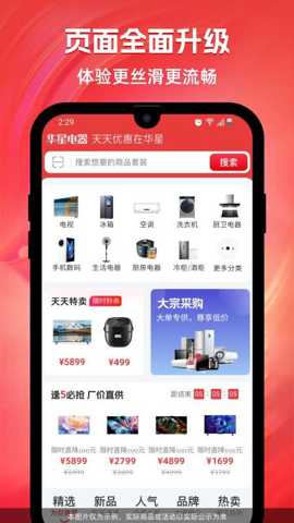 华星电器是一款专注于家电设备在线销售与服务的移动软件,为用户提供涵盖电视、空调、洗衣机、风扇等全品类品牌家电的选购平台。软件通过整合供应链资源与智能化推荐系统,帮助用户以更具竞争力的价格便捷地获取所需商品,并依托其强大的后端物流与服务体系,保障从选购到配送的全流程高效、可靠体验,为用户打造一站式、经济实惠的家电购物解决方案。