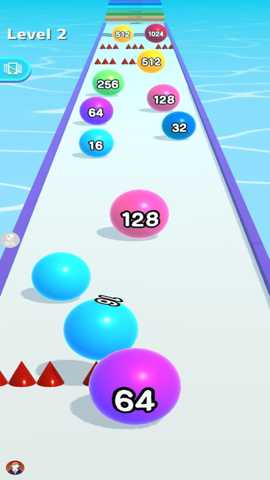 1. 吞噬成长连锁策略系统:这是游戏最核心的创新玩法。玩家并非一味逃跑,而是需要主动规划路线,操控自己的球体去吞噬体积更小的球体。每成功吞噬一个,自身体积会增大,分数会跃升,并能引发连续的吞噬连锁反应。这种设计将跑酷的反应与益智游戏的策略完美结合,玩家需要时刻判断局势,决定是优先保命躲避还是冒险吞噬以谋求高分,极大地丰富了游戏的可玩性和深度。
