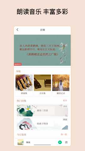 诗情画意是一款专注于中国古典诗词与文言文学习的移动应用软件,其核心功能在于构建一个集权威文本、深度解析、多感官沉浸式学习与个性化创作于一体的综合性古典文化知识平台。软件通过整合中华书局、上海古籍出版社等权威出版机构的校注版本,为用户提供了海量且精准的诗词原文及注释;它超越了传统的文本阅读模式,创新性地融合了历代名家画作、专业诵读分析与智能文化场景推送,从视觉、听觉及文化语境等多个维度,深化用户对诗词意境、韵律和历史背景的理解,从而有效降低古典文学的学习门槛,提升学习的系统性与趣味性。