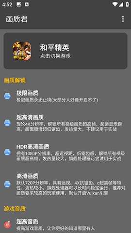 第四,是硬件功耗与性能的智能管理策略。高画质和高帧率通常意味着更高的CPU/GPU负载和能耗。画质君并非无节制地提升参数,其内置了功耗监控与温控逻辑。不同的画质方案会明确标注其预估的发热量与功耗等级,并给出设备性能建议。极限画质方案会提示需要旗舰级芯片并注意散热,均衡模式则针对中端芯片优化以保证长时间稳定运行。这种透明化的功耗提示,帮助用户避免因不当设置导致的设备过热降频或电池过快耗尽,体现了工具的专业性与责任感。