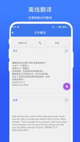 1. 实时拍照翻译:这是软件的核心功能。用户启动该功能并授予摄像头权限后,即可将手机镜头对准任何包含文字的物体。软件界面会实时显示摄像头画面,并自动框选出识别到的文本区域。用户可点击快门进行静态捕捉,也可启用实时取景模式,此时画面中的文本会近乎实时地被替换为目标语言的译文,实现所见即所译。此功能完美解决了在旅行中快速理解路牌、餐厅菜单、博物馆展品说明,或在购物时即时了解商品成分与使用说明的即时性需求。