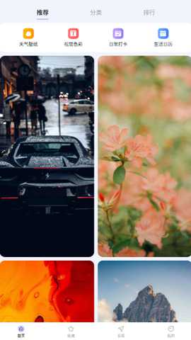 5. 一体化生活管理平台:深度整合的日历功能不仅支持添加日程与设置提醒,更可与壁纸库和打卡功能联动。为重要的纪念日设定专属壁纸,或在完成特定打卡目标后解锁限定壁纸作为奖励。天气预报模块的数据可直接用于驱动壁纸的自动切换(如雨天切换为对应主题壁纸)。此功能解决了各类生活管理工具相互割裂、数据无法互通的问题,在一个应用内实现了视觉美化与生活效率工具的有机统一。