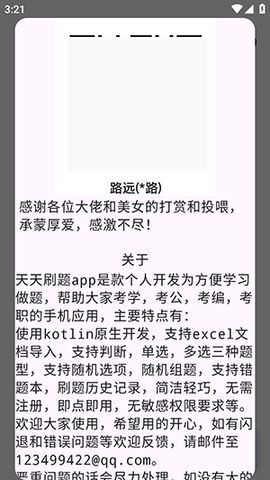 天天刷题是一款面向多阶段、多类型考试备考需求的专业化移动学习应用,其核心设计理念在于通过技术手段整合碎片化时间,为用户提供高度个性化、高效率的刷题解决方案。软件摒弃了传统题库应用固定、僵化的内容模式,转而赋予用户强大的自主权,支持将个人收集的课堂笔记、历年真题、复习重点等资料便捷地转化为可随时练习的数字化题库。这一特性使其能够无缝适配从基础教育到高等教育,乃至公务员考试、研究生入学考试、职业资格认证等广泛领域的学习场景。在功能层面,软件不仅聚焦于刷题这一核心动作,更构建了涵盖错题智能归集、针对性重做、学习进度可视化及无干扰纯净体验的完整学习闭环。其采用Kotlin原生语言开发,确保了应用底层运行的稳定与流畅,恪守用户隐私与体验优先原则,免注册、无广告、无冗余权限索取,并支持通过标准Excel文档进行题库的批量创建与管理,显著降低了用户的使用门槛与技术负担,使之成为学生及在职备考者进行系统性、自主性复习的得力工具。