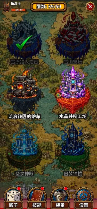 1. 探索与决策: 地图上的节点通常包括战斗、宝藏(获得新骰子或装备)、休整点(恢复生命)、商人以及随机事件。玩家的每次移动选择都至关重要,需要根据自身当前状态(生命值、骰子池强度)和对后续首领战的预判,来规划最优路线。生命值较低时应优先寻找休整点,若感觉输出不足则应寻找宝藏节点补充强力骰子。