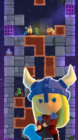 主要操作与目标:游戏采用直观的触屏手势操作。向上或向下滑动屏幕,角色会向上跳跃或向下挥动战锤进行攻击;向左或向右滑动,则控制角色在平台间横向移动。玩家的核心行动循环是:进入一个楼层平台 -> 观察敌人(如史莱姆、蝙蝠、盔甲士兵)和陷阱分布 -> 通过移动避开危险区域或敌人攻击 -> 看准时机,向下滑动发动锤击,消灭敌人或砸碎可破坏的障碍物(如木箱、石柱)-> 清空当前层威胁后,角色会自动下坠至下一层,如此循环。除了战斗,每一层都可能有隐藏的金币、宝石或特殊道具(如临时护盾、磁铁、冲刺等),收集它们对长远成长至关重要。