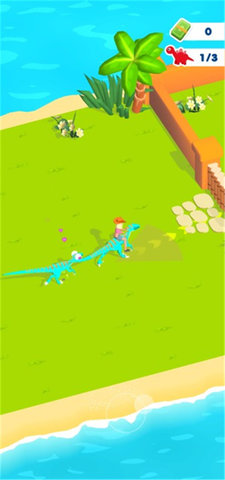 主要操作方式: 游戏采用直观的触屏操控。在公园主场景中,玩家通过滑动屏幕自由移动视角,点击建筑或恐龙进行交互。当需要外出捕捉恐龙时,界面会进入特定的探索场景,此时玩家需要通过快速点击、长按或画圈等手势操作来完成与恐龙的互动,填满屏幕上的爱心进度条即代表捕获成功。菜单和建造界面则采用清晰的图标点击操作,管理员工、查看恐龙状态等均可通过简洁的UI界面轻松完成。