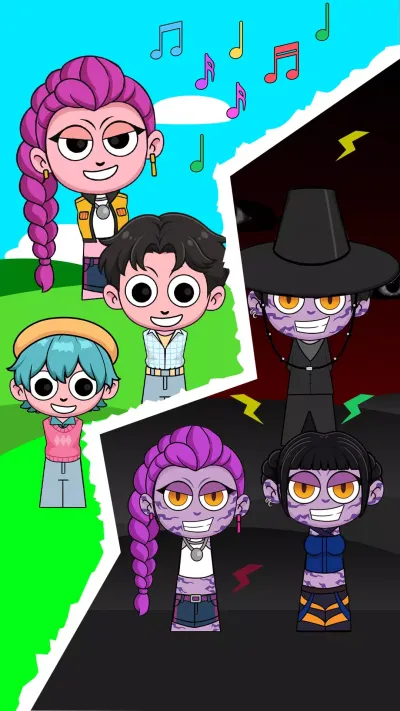 踏入怪兽韩团节奏盒子的世界,仿佛开启一场奇妙的感官错位之旅。这款游戏将惊悚怪谈的幽暗氛围与韩流音乐的动感活力、无厘头的幽默感进行了前所未有的巧妙融合,创造出一个既光怪陆离又令人着迷的创作空间。你的身份不是被动的听众,而是掌控全局的怪物派对DJ。游戏的核心吸引力在于其极致的创作自由——你可以像调配魔法药剂一样,将幽灵的叹息、科学怪人的嘟囔、狼人的嚎叫等怪异音效,与滑稽搞怪的人声采样,一同注入标志性的K-POP节奏骨架中,亲手烹制出独属于你的恐怖金曲。从幽暗的闹鬼古堡地下室到光影迷离的赛博朋克风恐怖俱乐部,每个场景都是一座声音的宝藏,等待你用指尖去发掘与混搭。而一群性格迥异、从呆萌到酷炫的怪物DJ伙伴,将伴随你的每一次混音,用他们专属的音乐主题和动态反馈,让整个创作过程充满意想不到的趣味与沉浸感。这不仅仅是一款节奏游戏,更是一个释放你古怪音乐想象力的数字游乐场。