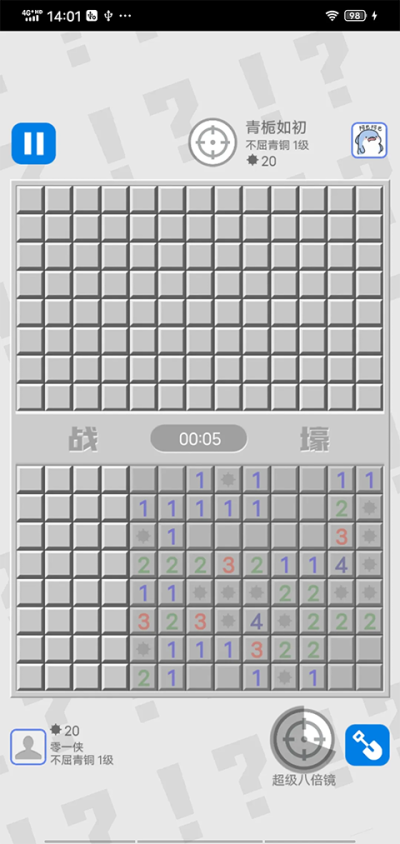 普通模式与成长: 在普通模式中,玩家可以挑战预设的各级难度关卡,关卡随机生成,保证重复挑战的新鲜感。完成关卡可获得金币或道具奖励。此模式也是练习扫雷基本功、熟悉新技能效果的绝佳场所。游戏支持存档续玩功能,任何模式下的对局都可以随时中断,下次进入时继续,非常人性化。