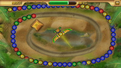 主要目标:玩家的首要目标是在珠链滚动到轨道终点之前,将其全部消除。每条珠链由多种颜色的弹珠顺序组成,会沿着固定的蜿蜒轨道持续向终点(通常表现为一个洞口或神像)移动。