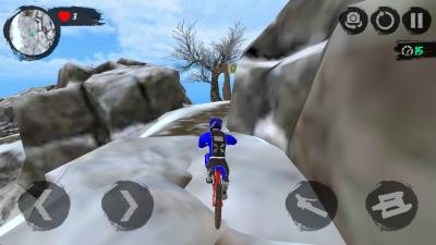 主要操作方式: 游戏采用直观的双侧虚拟按键布局。屏幕左侧是一个虚拟摇杆,负责控制自行车的方向与平衡,细微的推拉操作即可实现精准的过弯角度调整。屏幕右侧则设有明确的加速与制动/刹车按钮。加速按钮用于在平路或下坡时提升速度;制动按钮则至关重要,用于控制速度、辅助过弯,以及在腾空时配合方向键调整车身姿态。这种分离式控制让方向与动力管理清晰分明,降低了上手门槛,但精通则需要极高的协调性。
