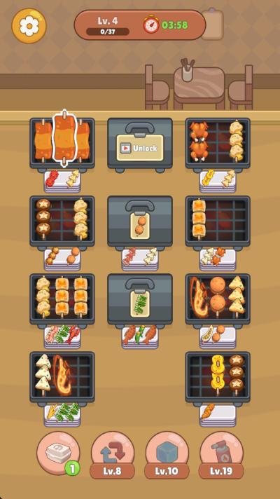 烧烤排序的核心玩法清晰而富有深度,主要围绕消除满足订单这一循环展开。玩家的主要目标是扮演烧烤摊主,准确高效地完成每一位顾客头顶显示的订单。订单通常要求特定种类和数量的烤串,3串羊肉串或2串鸡翅加1串辣椒。游戏的操作方式直观易懂:烤架上布满了用竹签串好的各类生食食材。玩家需要通过手指滑动来拖拽移动整串食材,当三串或以上相同类型的烤串在横排或竖列上相邻对齐时,它们就会合并升级为一串更高级、计数更多的熟食烤串,并计入相应订单的完成进度。将三串生鸡肉串移动到一起,它们会合并成一串完美的熟烤鸡翅。随着关卡推进,烤架布局会变得更加复杂,食材种类也更加繁多,考验玩家的观察与布局能力。当遇到难以快速合并的僵局时,玩家可以使用预先获得或通过奖励兑换的道具来辅助通关,如火焰助推器可以随机烤熟(即消除)一格食材,刷新器可以重新排列当前烤架上的部分食材。成功完成关卡后,玩家将获得金币与星星奖励,用于解锁新的食材图鉴、升级摊位设备或装饰店铺。游戏还设置了挑战模式,要求玩家在连续快速消除中触发分数倍增效应,这对玩家的瞬时反应和局势预判能力提出了更高要求。从基本的拖拽合并,到中期的空间规划与连锁预判,再到后期的设备管理与策略性道具使用,烧烤排序构建了一个循序渐进、乐趣层层递进的玩法体系,让玩家在享受消除快感的也能深深沉浸在经营一家成功烧烤店的满足感之中。