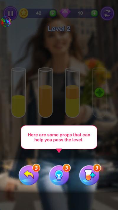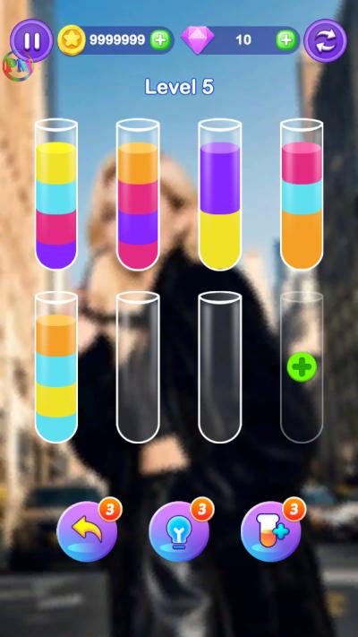 游戏进程与目标: 在基础关卡中,目标通常是将液体完全倒入对应颜色的目标瓶子中。这要求玩家精准控制,避免液体在途中洒出或倒入错误容器。成功倒入后,系统会进行验证,通过即可解锁下一关。随着关卡深入,目标变得复杂多样:精准注满:利用有限容量的液体,恰好注满形状不规则的目标容器,考验对体积和流动的预估;引导分流:操作可变形平台(如管道、跷跷板)将一股液体分流至多个指定地点;分层挑战:在不混合的前提下,将密度不同的多种液体依次倒入同一个容器,形成完美的鸡尾酒式分层;环境解谜:利用关卡中的热源、冰点、风扇等环境元素改变液体特性(如凝固、蒸发、加速),以开辟新的路径或达成目标状态。