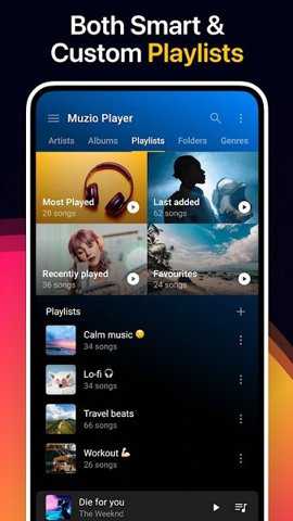 第二项特色是智能化、多维度的音乐库管理与元数据整合系统。MuzioPlayer专业版不仅仅是一个播放器,更是一个强大的音乐数据库管理工具。它能够自动扫描设备存储,并基于音频文件内嵌的ID3v2、Vorbis Comment等元数据信息,智能识别歌曲的标题、艺术家、专辑、流派、年代等信息,自动构建结构化的音乐库。通过创建静态或智能播放列表来组织音乐,智能播放列表支持基于多种条件(如艺术家、专辑、评分、播放次数、添加日期等)的动态筛选与自动更新,极大提升了音乐检索与分类的效率。支持手动编辑和在线获取补充元数据及高清专辑封面,确保音乐库信息完整、美观。
