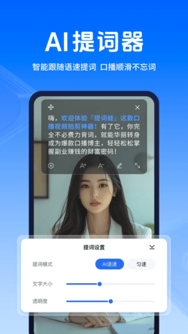 2. 专业级视觉参数微调与透明度控制:提供包括字体族、字号、字重、行间距、字间距在内的全方位文本视觉自定义选项,满足不同用户视力需求与审美偏好。尤为关键的是背景透明度的无级调节功能,用户可将提词板背景设置为从完全不透明到完全透明的任意状态。这使得提词板能够以半透明层的形式叠加在相机预览画面、PPT演示稿或其他参考背景之上,解决了提词工具与拍摄画面两层皮的视觉割裂问题,实现更沉浸的提词体验。